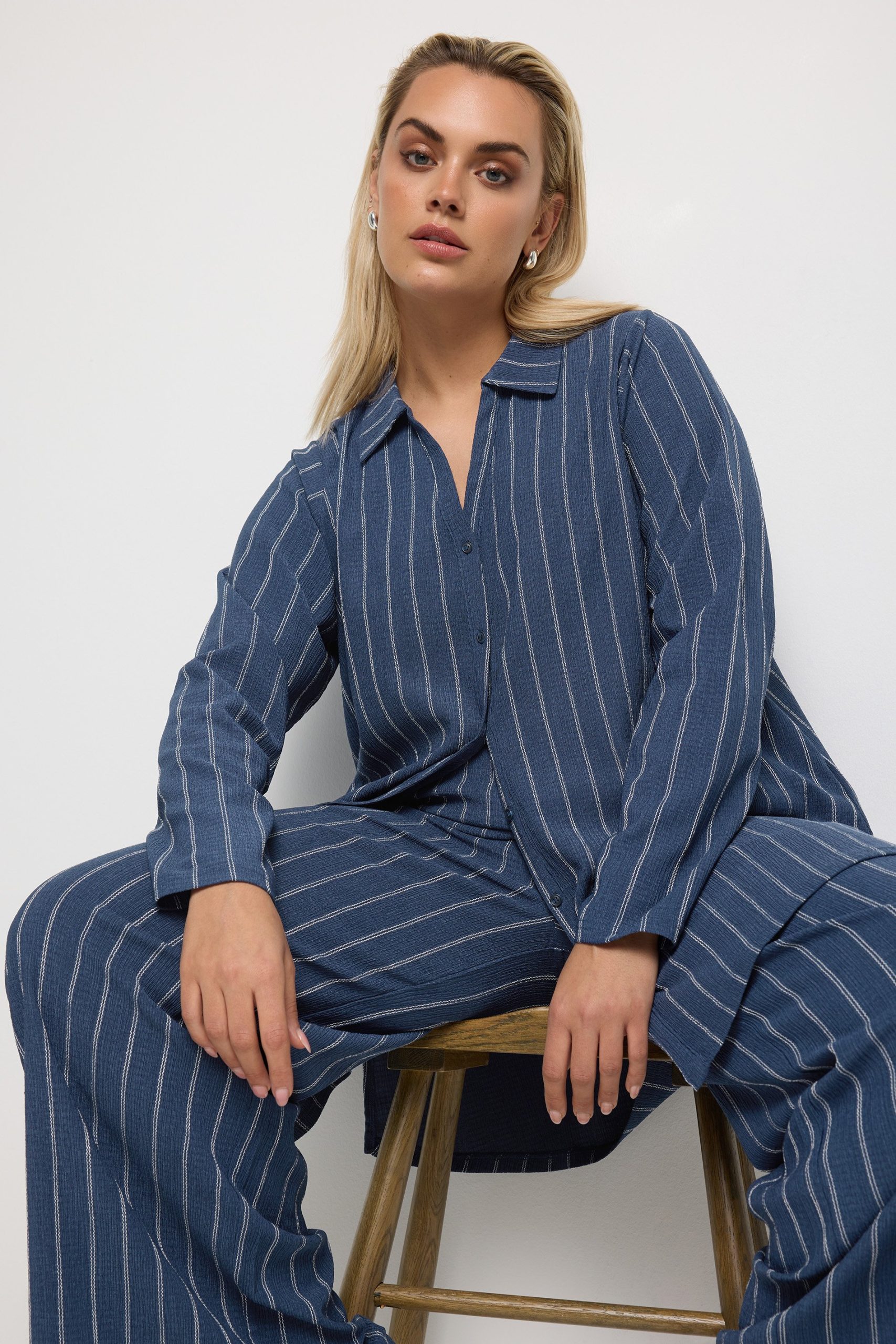 Home » Dames » Kleding » Grote maten » Blouses & tunieken » Yours Overhemd Met Krijtstreep En Textuur In Donkerblauw, Women’s Curve & Plus Size, Yours