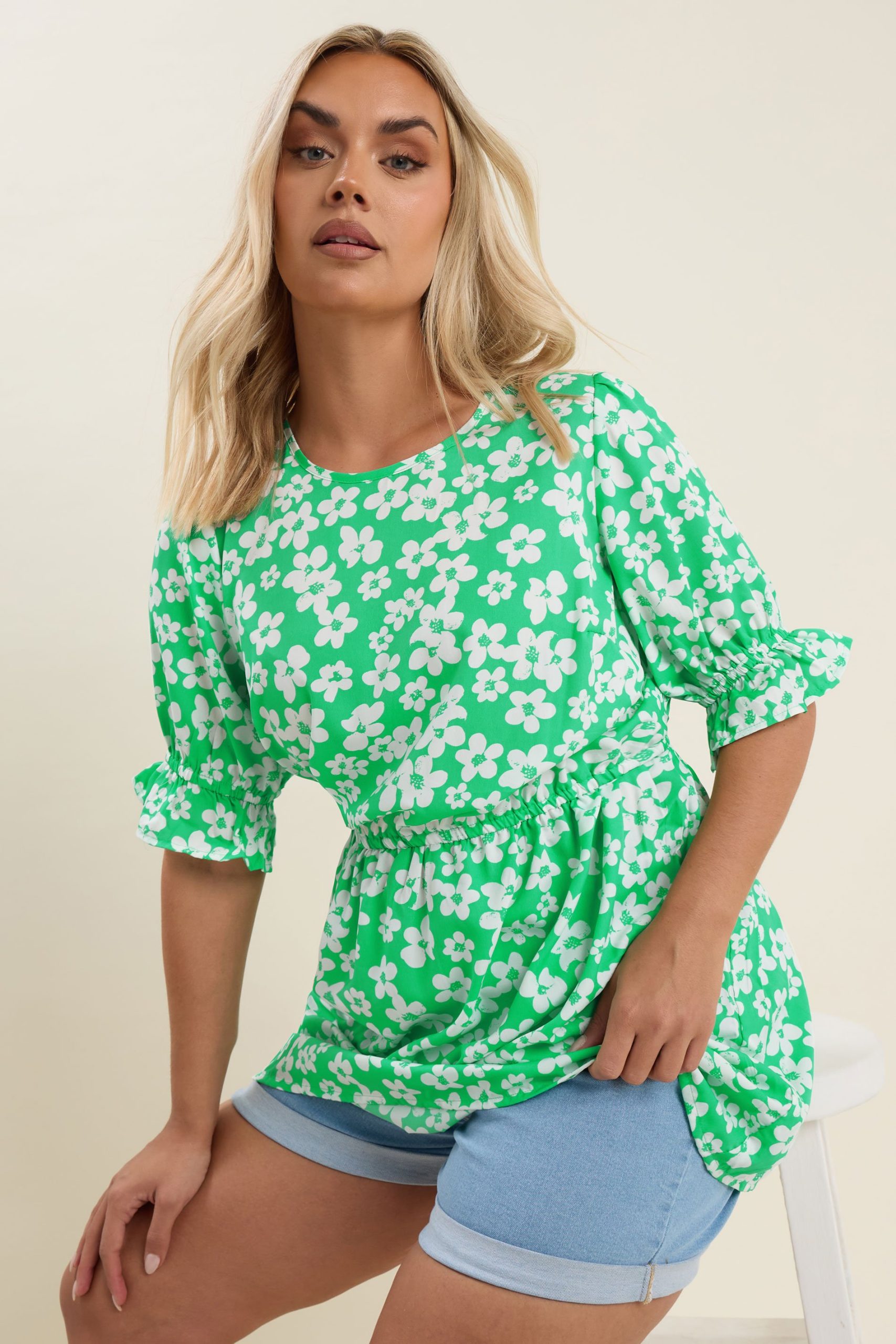 Home » Dames » Kleding » Grote maten » Tops & shirts » Yours Peplum Top Met Bloemmotief In Groen/Wit, Women’s Curve & Plus Size, Yours