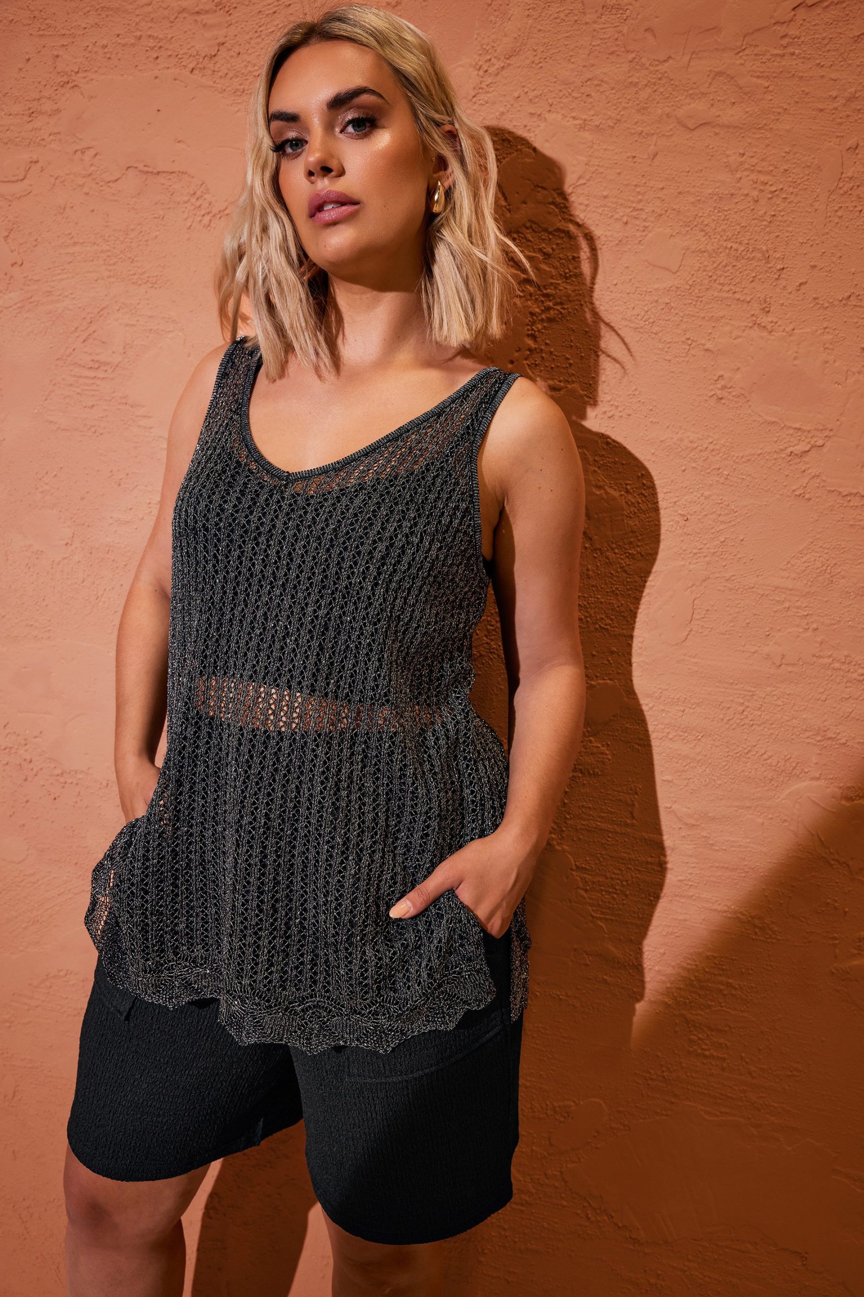 Home » Dames » Kleding » Grote maten » Tops & shirts » Yours Pointelle Hemd In Metallic Zwart/Zilver Size 54-56