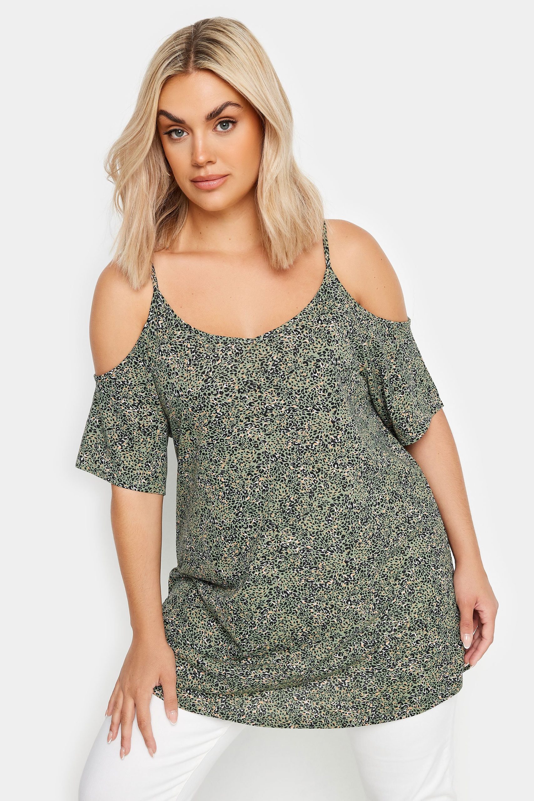 Home » Dames » Kleding » Grote maten » Tops & shirts » Yours Top Met Dierenprint En Blote Schouders In Kakigroen, Women’s Curve & Plus Size, Yours