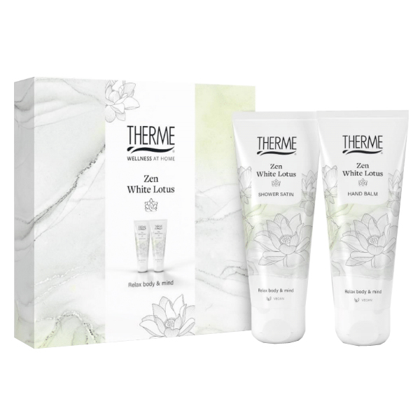 Dit Zen White Lotus verwenpakketje van Therme bevat een rijke combinatie van een verzorgende Shower Satin en een zijdezachte Hand Balm. Ontspan lichaam en geest met de rustgevende en serene geur van witte lotus, aromatische jasmijn en een vleugje witte musk. Een lief gebaar en een heerlijk moment van ontspanning.Inhoud:- Zen White Lotus Shower Satin 75 ml- Zen White Lotus Hand Balm 75 ml