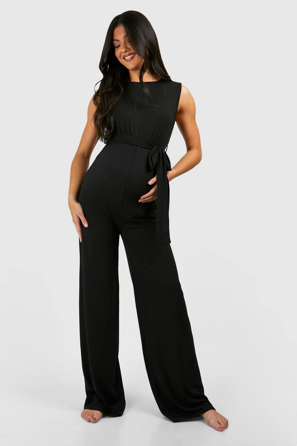 Zwangerschapsjumpsuit met geribbelde tailleband en mouwloos lounge-ontwerp