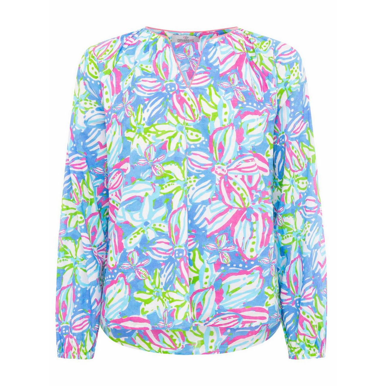Home » Dames » Kleding » Blouses & tunieken » Zwillingsherz Blouse zonder sluiting Bloemendroom met bloemenmotief en gekleurde rand bij de hals
