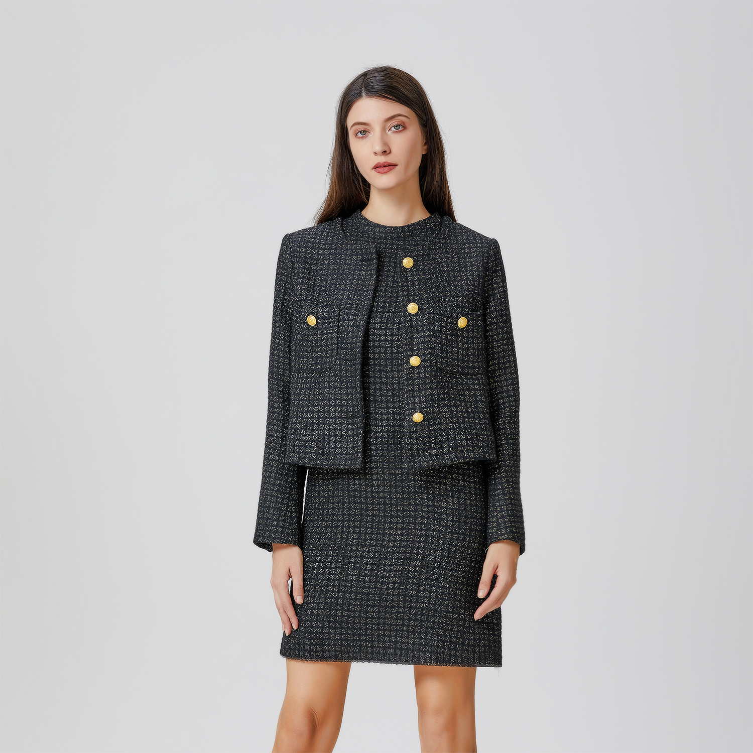 Mouwloze tweed korte…