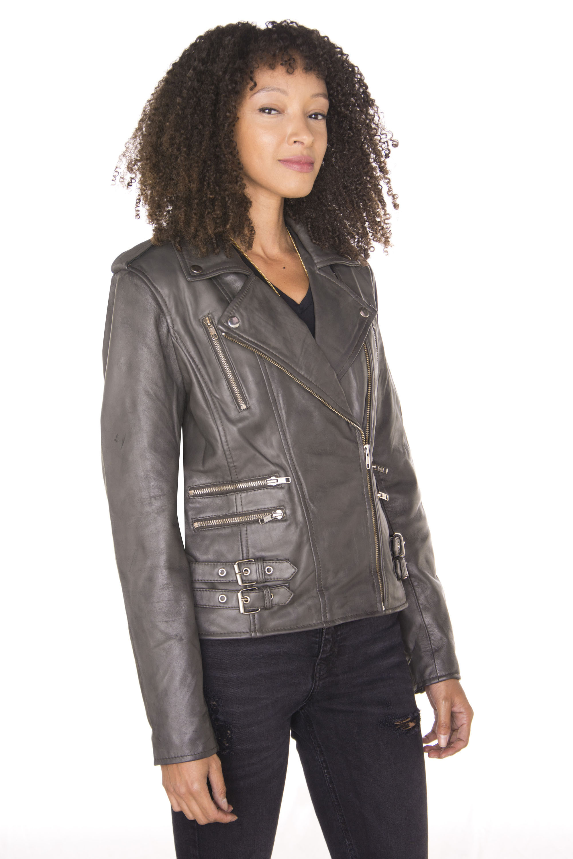 Mooi, eenvoudig leren jack. Getailleerde snit. Ideaal om te combineren. Het jack heeft verticale siernaden die het silhouet benadrukken en een opstaande kraag. Er zitten twee zakken aan de buitenkant…Mooi, eenvoudig leren jack. Getailleerde snit. Ideaal om te combineren. Het jack heeft verticale siernaden die het silhouet benadrukken en een opstaande kraag. Er zitten twee zakken aan de buitenkant en een zak met rits aan de binnenkant. De manchetten worden gesloten met een drukknoop.